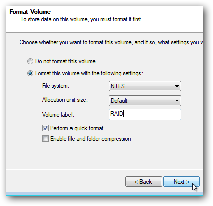 The first step you need to do is backup your information on the disks you want to use in the RAID. While it is not required that you format your disks for some of the RAID options, don’t take the chance and make a backup.